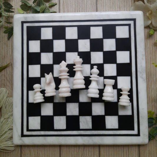 Marble Chess Board (40cmx40cm) & Chess B&W Pieces